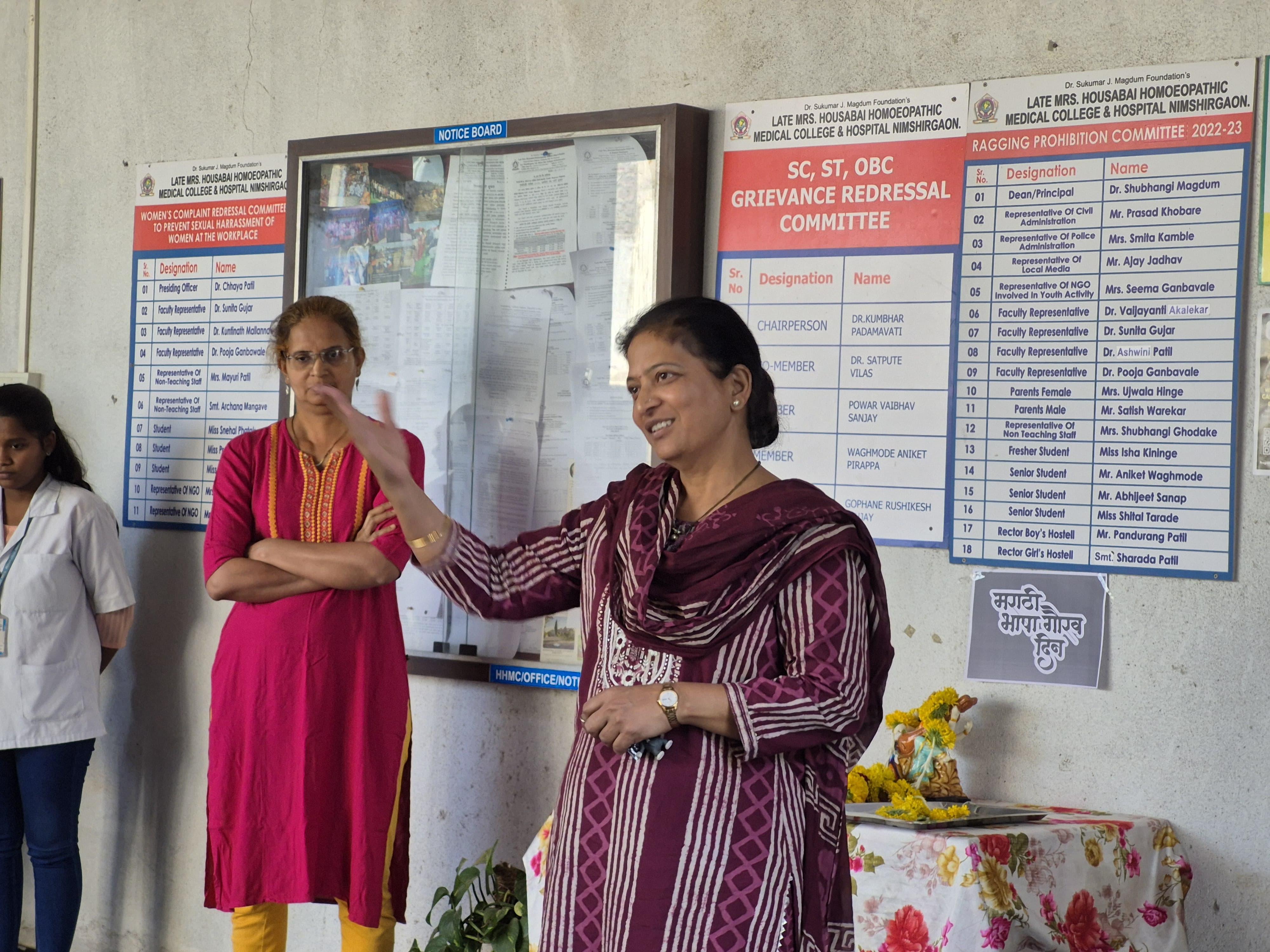 आमच्या महाविद्यालयात कै. सौ. हौसाबाई होमिओपॅथिक मेडिकल कॉलेज अँड हॉस्पिटल, निमशिरगाव येथे मराठी दिन उत्साहात साजरा करण्यात आला. या निमित्ताने भाषण, कविता वाचन आणि सांस्कृतिक कार्यक्रमांचे आयोजन करण्यात आले होते. विद्यार्थ्यांनी मराठी भाषेचे महत्त्व आणि तिचा अभिमान याबद्दल आपले विचार मांडले. कार्यक्रमाच्या शेवटी सर्वांनी मराठी भाषा जपण्याची आणि तिचा गौरव वाढवण्याची प्रतिज्ञा घेतली..